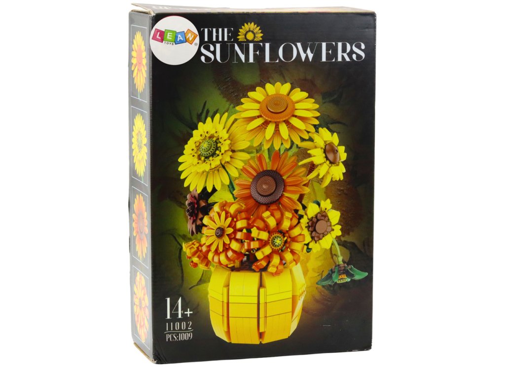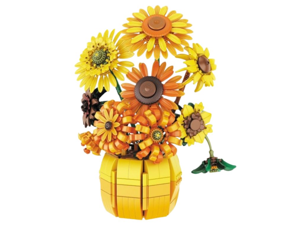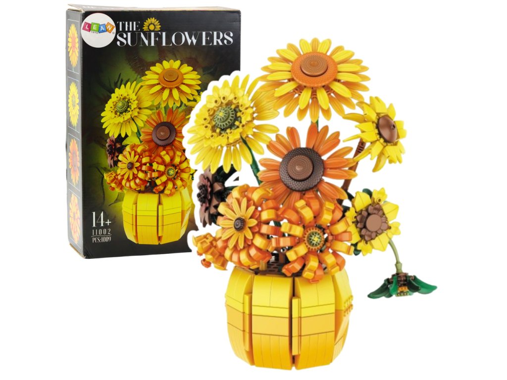 - SLUNEČNICE 1009 DÍLŮ Sada stavebnicových kostek, která umožňuje vytvořit efektivní kytici slunečnic v elegantní váze, je vhodná pro milovníky estetiky a kreativního stavebnictví
