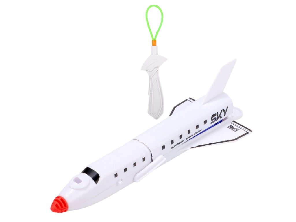 - Kosmická loď s padákem a prakem je dynamická hračka určená pro děti, které milují pohyb, experimenty a kosmické motivy