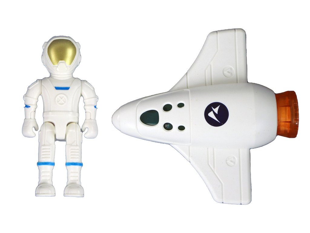 - Figurka kosmonauta, vybavená helmou a rukavicemi, připravená k objevování