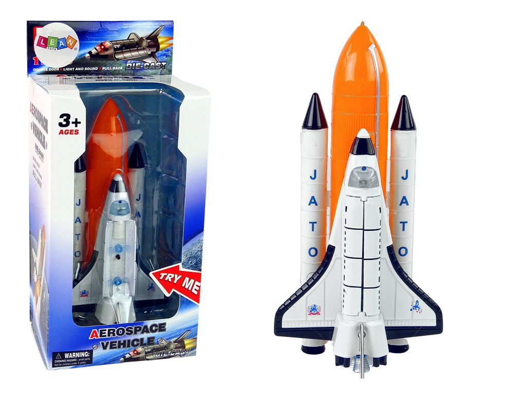 Raketa s kovovou kosmickou lodí Aerospace Světelné a zvukové efekty! Pohon PULL-BACK Sada raketa + kosmická loď 2 v 1 je ideální hračkou pro fanoušky vesmíru a astronomie