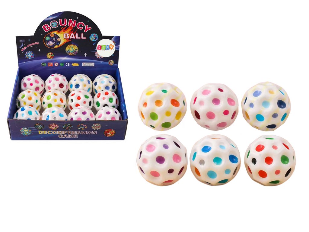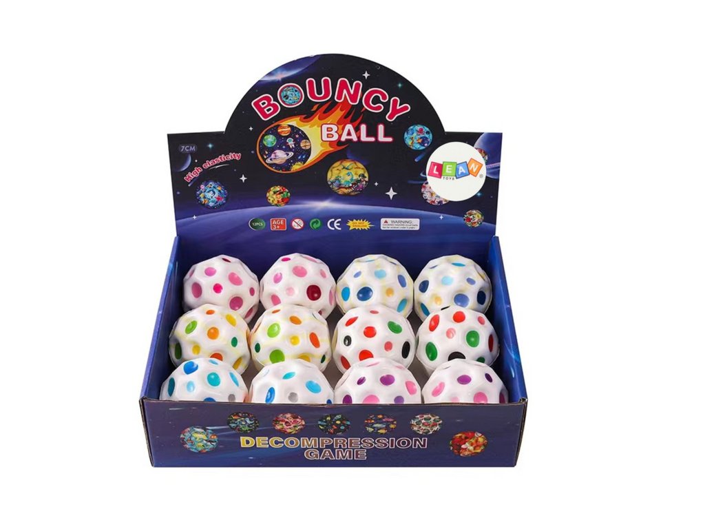 - Kosmická míček Spaceball v bílé barvě s barevnými prohlubněmi je fascinující hračka, která potěší jak malé děti, starší děti, tak i dospělé
