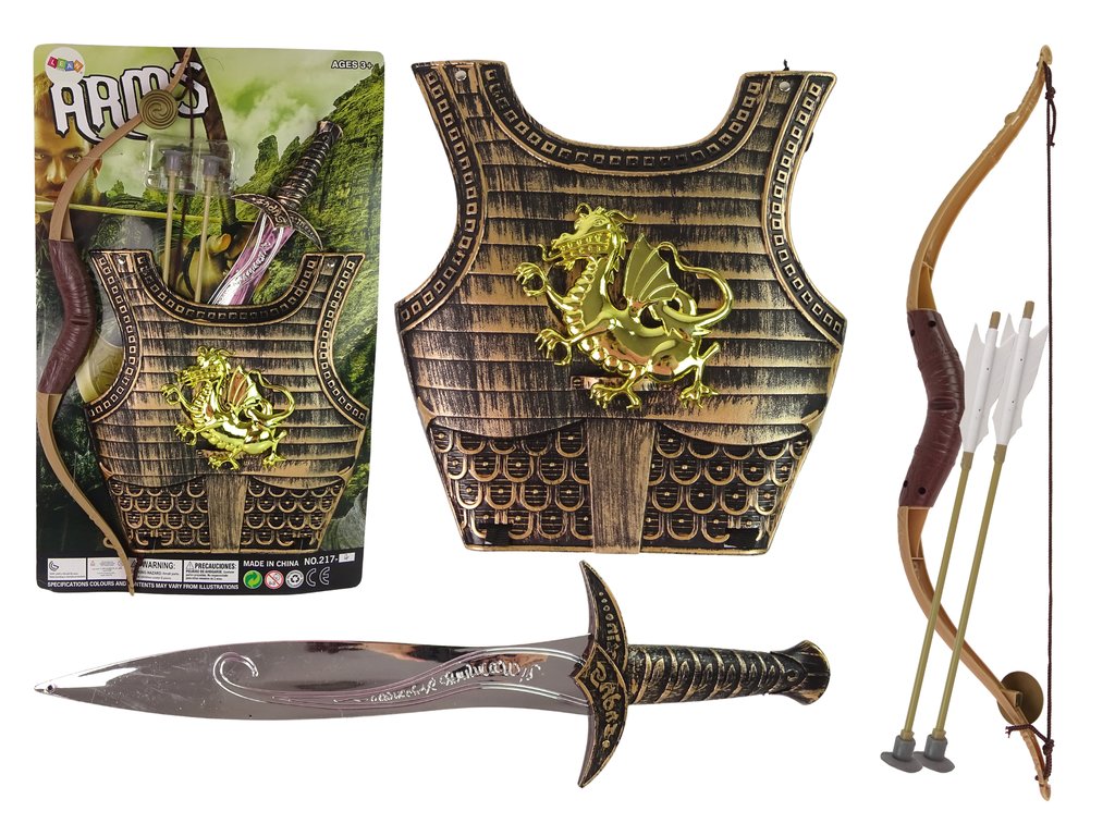 Samurajský kostým rytíře, sada luk a meč Nezbytná výbava malého samuraje je skvělým dárkem pro každého chlapce Je to ideální volba nejen pro každodenní hraní s kamarády, ale také jako zajímavý doplněk kostýmu na maškarní ples v mateřské škole nebo ve škole