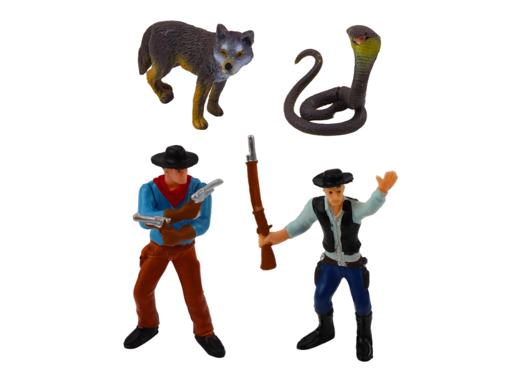 - Součástí sady jsou podrobně zpracované figurky kovbojů, realistická divoká zvířata, prvky krajiny a bohatá sada doplňků, které dítě přenesou do atmosféry Divokého Západu