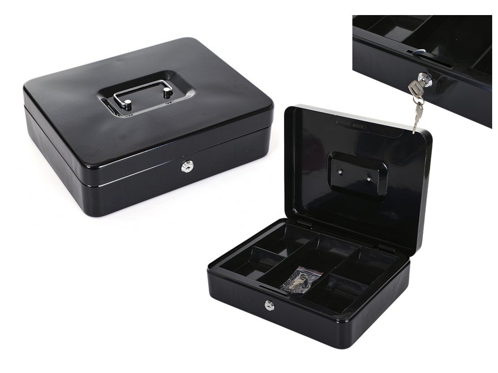 - Tato elegantní černá skříňka nabízí vynikající řešení pro úschovu hotovosti a cenností, ať už ji použijete doma, v kanceláři nebo na cestách