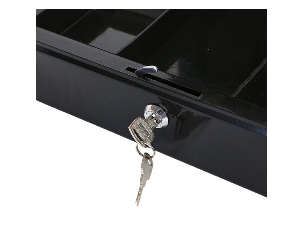 - S dvěma bezpečnostními klíči je ochrana vašich hodnot zaručena, zatímco snadná přenositelnost díky pohodlné rukojeti umožňuje využití pokladničky kdekoliv to potřebujete