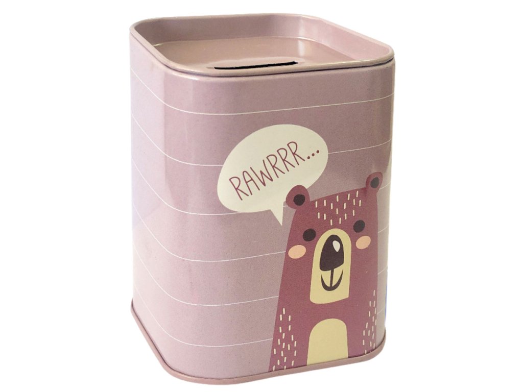 KOVOVÁ POKLADNIČKA SE ZVÍŘÁTCEM Kovová pokladnička s roztomilým motivem zvířátka je ideálním způsobem, jak naučit děti šetřit Díky své pevné konstrukci a kompaktním rozměrům 11 x 8 x 8 cm je perfektní jako první pokladnička pro dítě