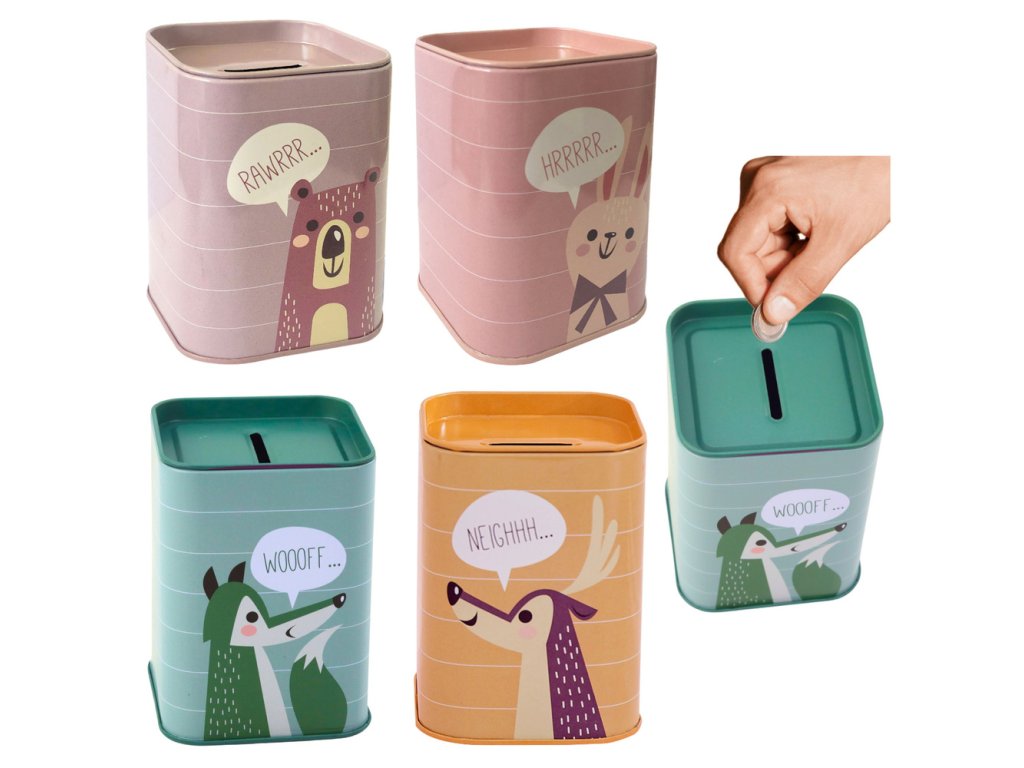 KOVOVÁ POKLADNIČKA SE ZVÍŘÁTCEM Kovová pokladnička s roztomilým motivem zvířátka je ideálním způsobem, jak naučit děti šetřit.