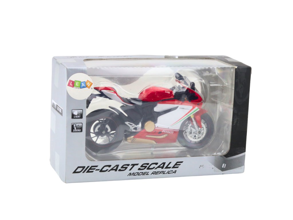 Kovová sportovní motorka červeno-bílá s osvětlením a zvuky 1:12