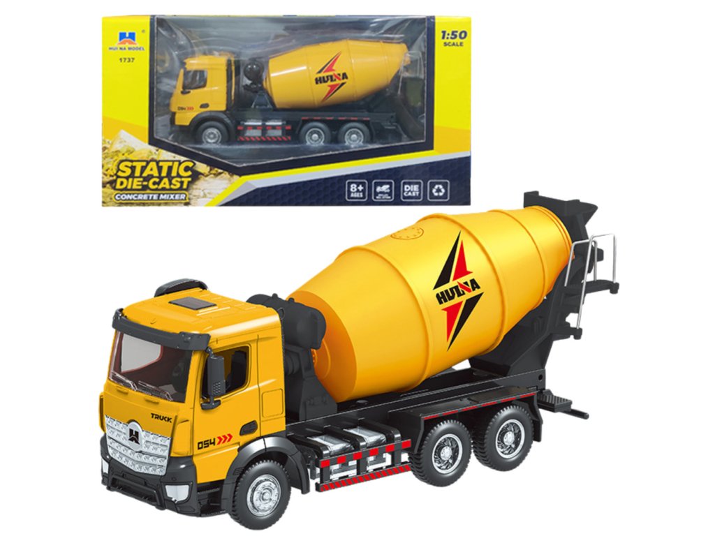 - Betonové míchadlo Kovová Huina Žlutá 1:50 je skvělou replikou skutečného stavebního vozidla, která spojuje realistický design a vysokou kvalitu zpracování