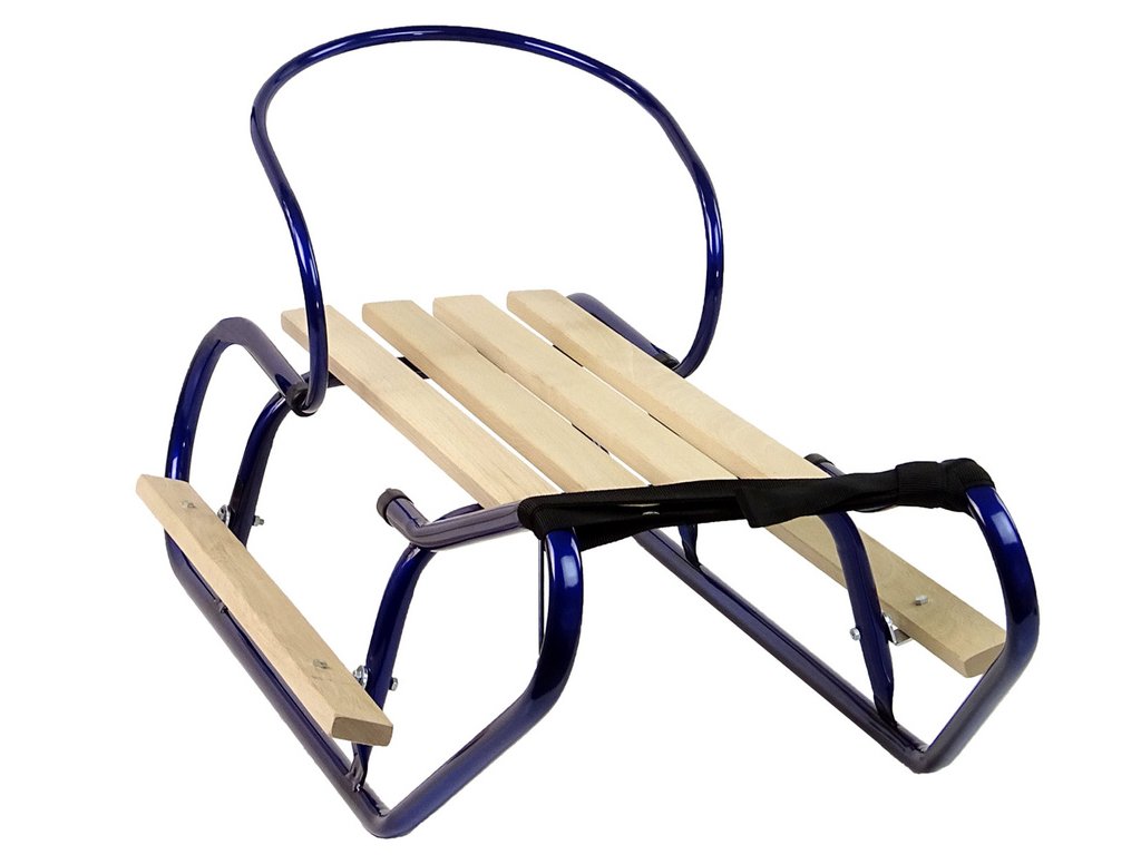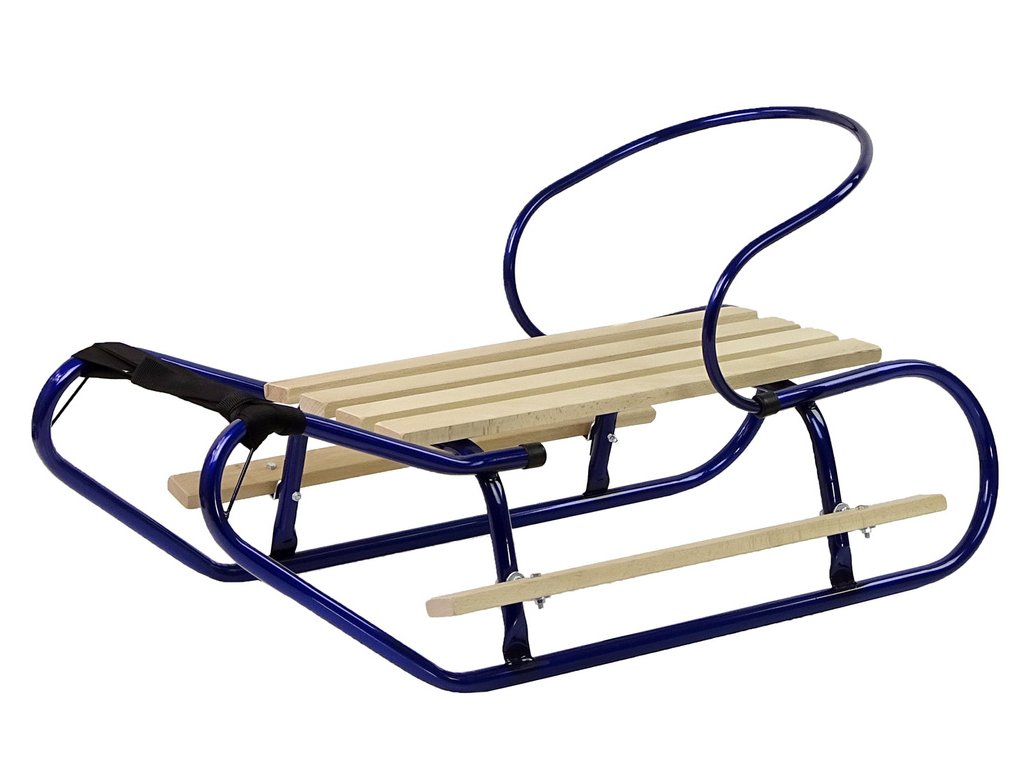 - Objevte kouzlo zimních radovánek s našimi kovovými sáněmi s opěrkou v elegantní modré barvě