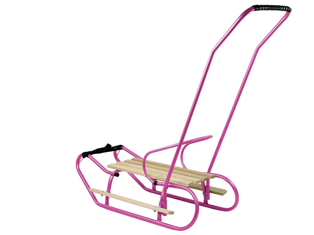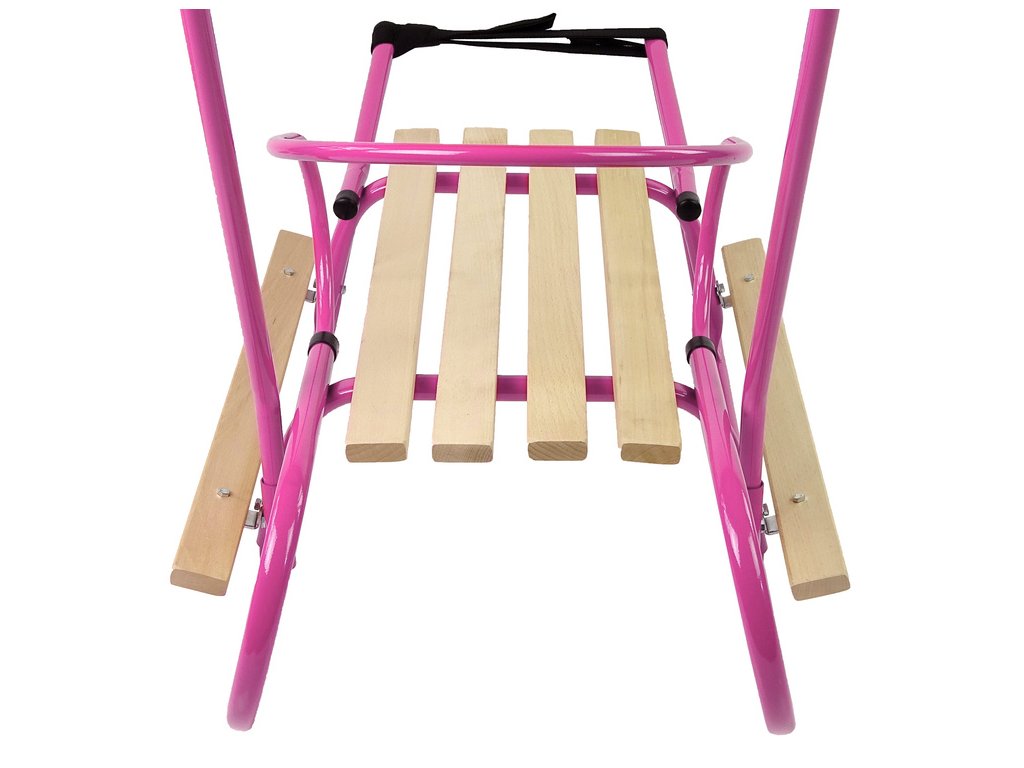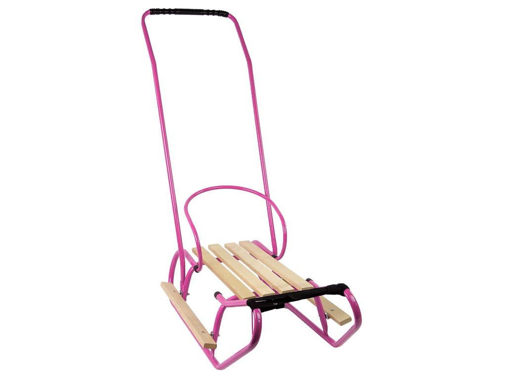 - Prožijte s vašimi dětmi nezapomenutelné zimní dobrodružství s našimi kovovými sáňkami s pusherem a opěrkou v nádherné růžové barvě!