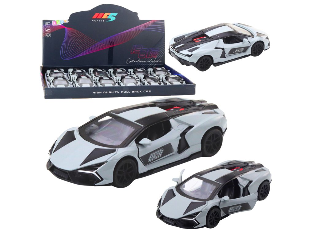 Kovové Sportovní Auto s Otevíracími Dveřmi, Pohon Rychlého Startu, Šedé 1:32