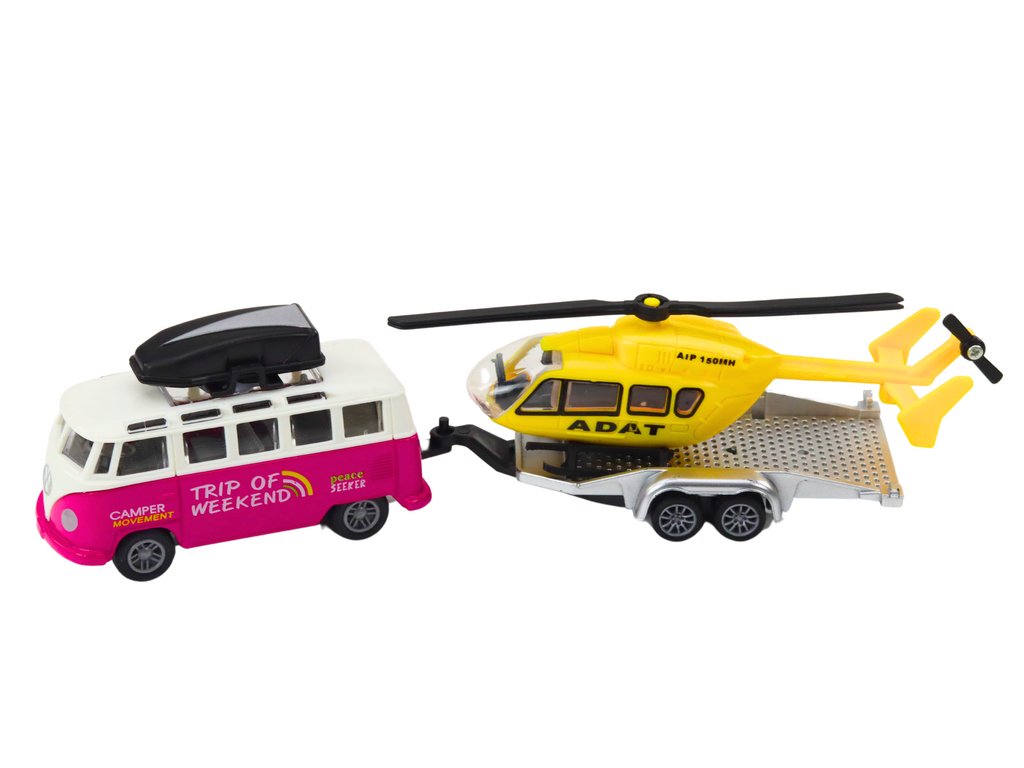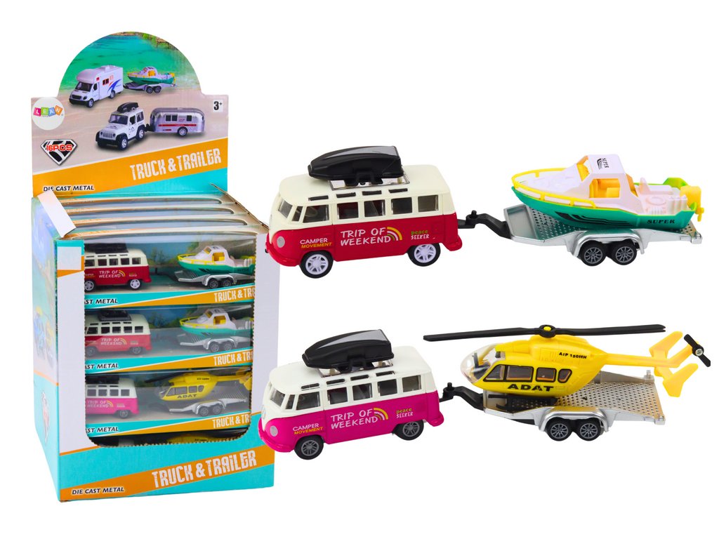 - Kovové Terénní Auto s Lodí nebo Vrtulníkem na Setrvačník Toto robustní terénní auto s přívěsem, na kterém je loď nebo vrtulník, je ideální volbou pro každého milovníka automobilů a dobrodružství