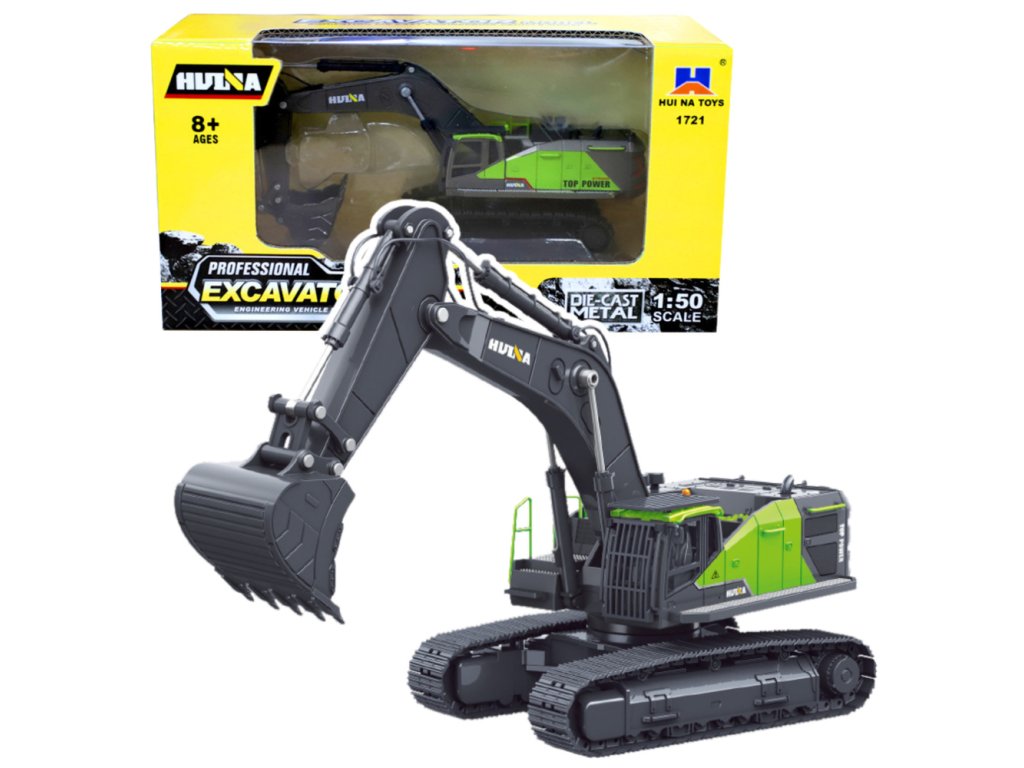 Kovový Housenkový Bagr Huina Zelený 1:50 je realistický model pásového bagru v měřítku 1:50, který vyniká vysokou kvalitou provedení a precizními detaily.