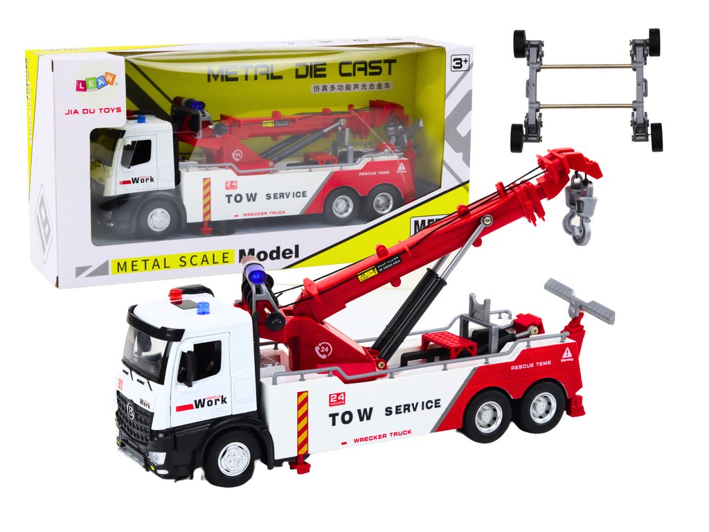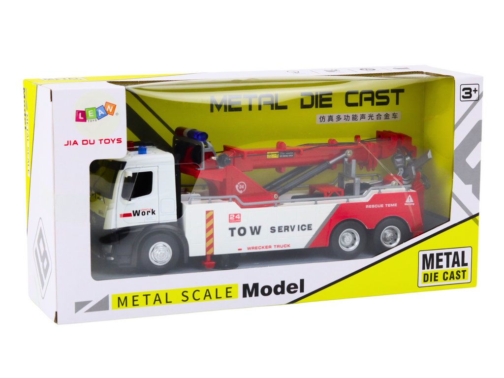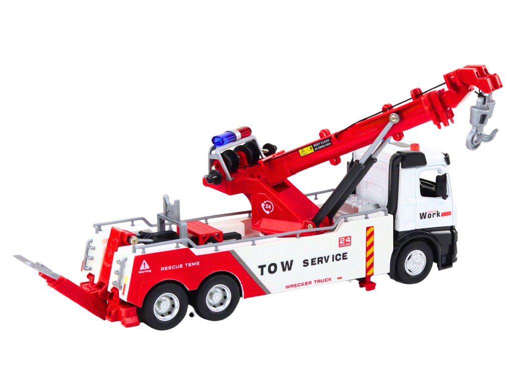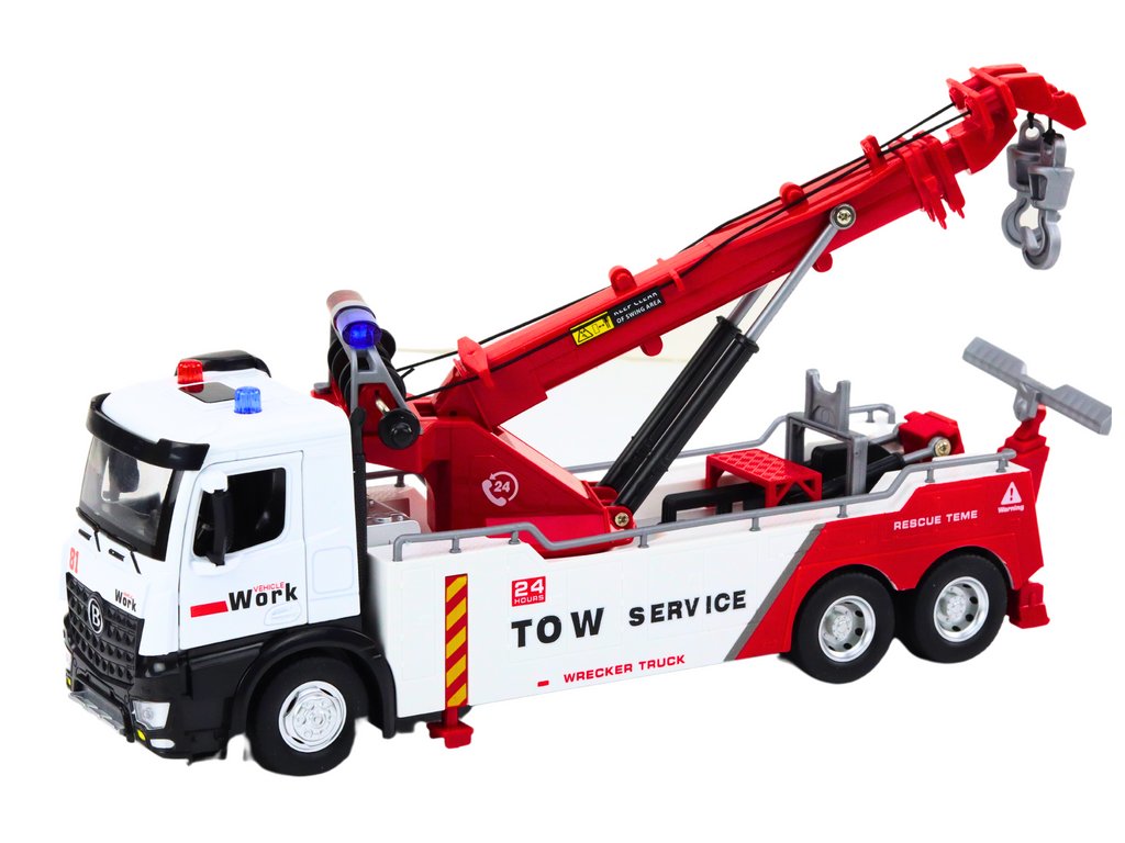 Kovový Jeřábový Nákladní Vůz Dva Háky Bílo-Červený Světla Zvuky