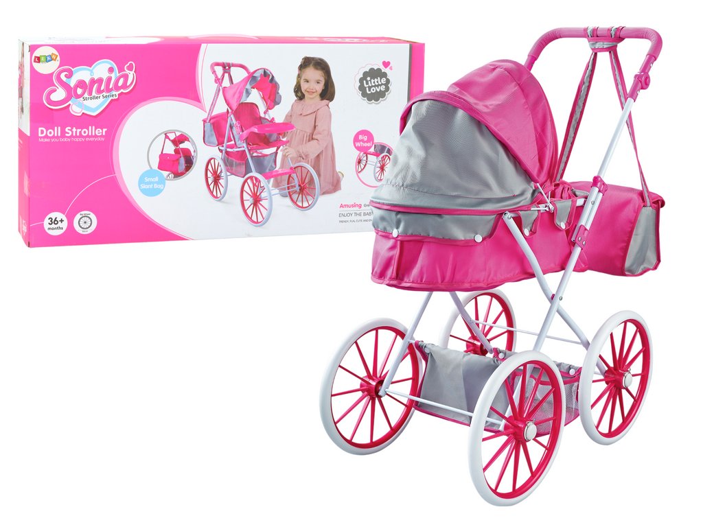 - Vozík pro panenky kovový taška velká kola růžový Růžový vozík pro panenky je neobvyklá hračka, která vtáhne děti do světa péče a kreativní zábavy