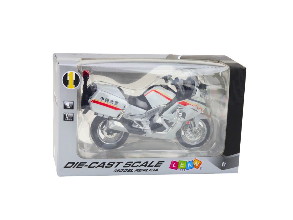 Kovový Motocykl Světla Zvuky Bílý Červené Žluté Linie 1:12