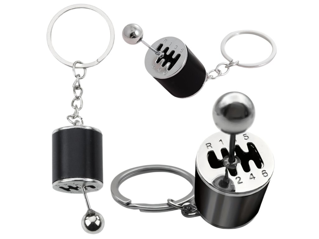 - Objevte kovový přívěsek na klíče ve tvaru převodovky s pohyblivou řadicí pákou v elegantní černé barvě!