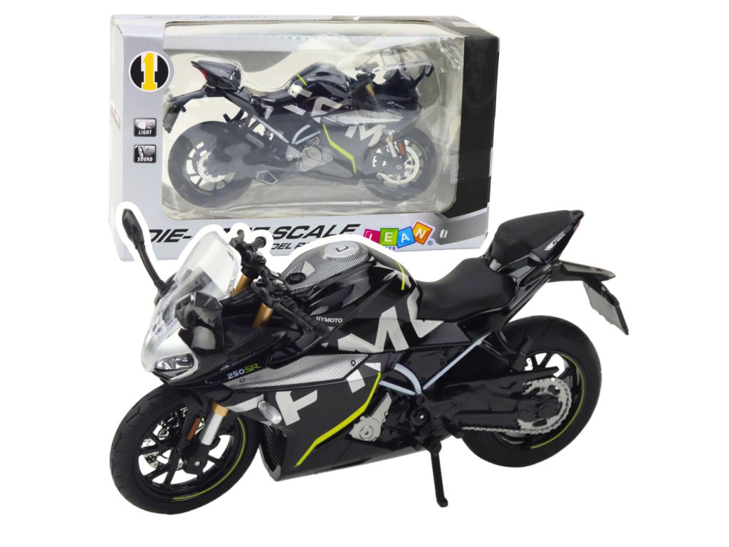 Kovový sportovní motocykl světla zvuky černý 250 SR 1:12