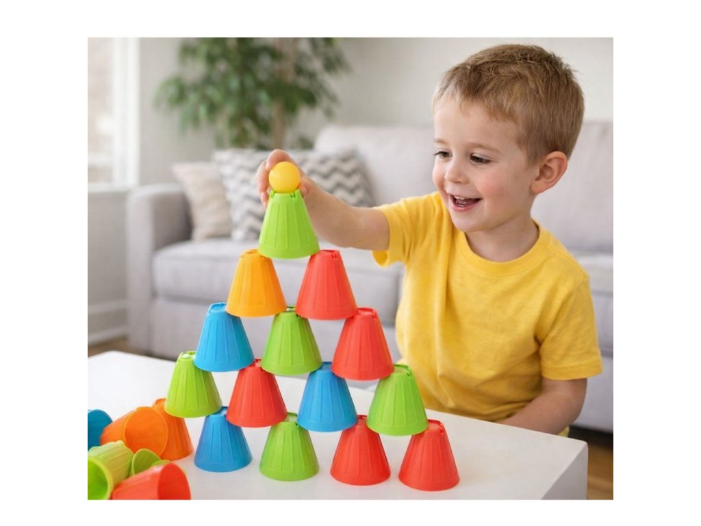 Kreativní hra pro děti 3v1 Szybkie Kubeczki - vzdělávací a zábavná sada s kelímky a míčky