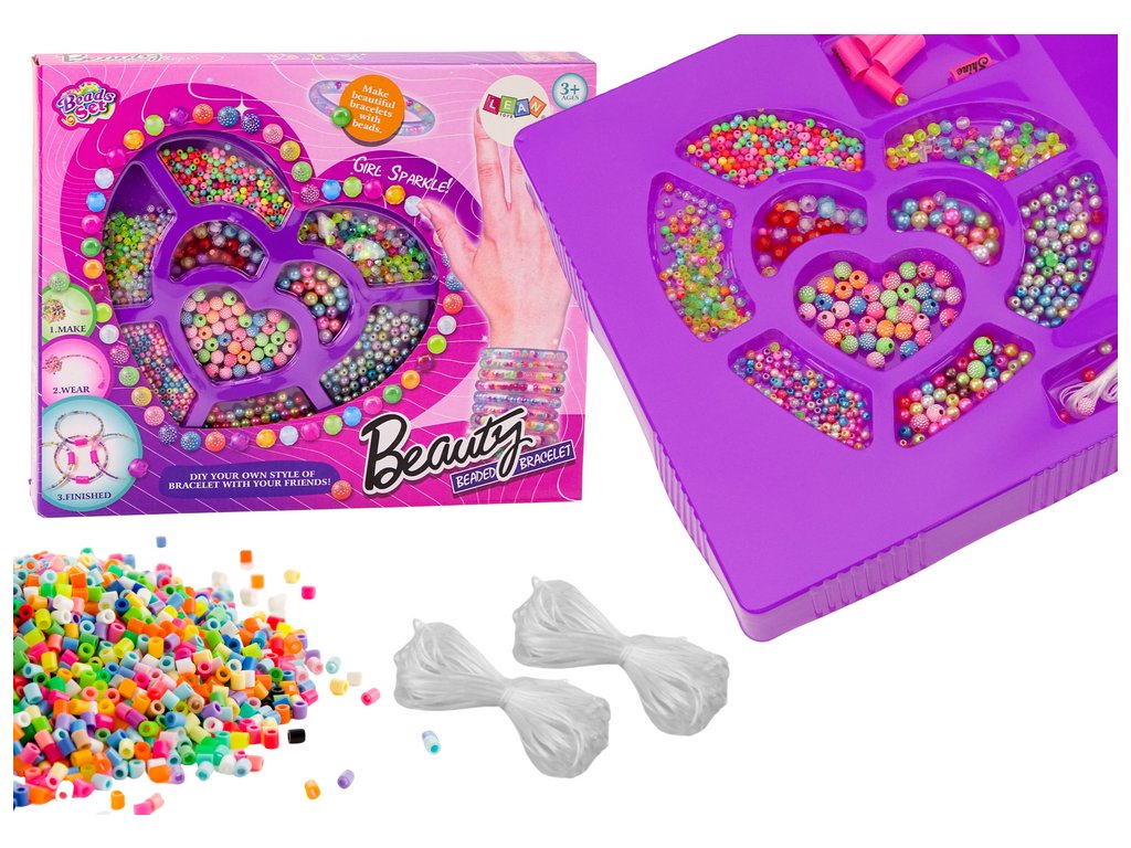 - Široký výběr korálků: Sada obsahuje korálky různých velikostí, tvarů a barev, což dětem poskytuje neomezenou možnost tvoření