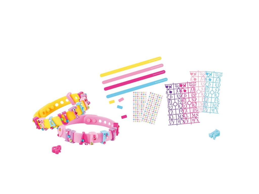 - S nastavitelnými gumovými náramky a různorodými závěsy s písmeny mohou děti vyjádřit svou jedinečnost a vytvořit si originální doplněk