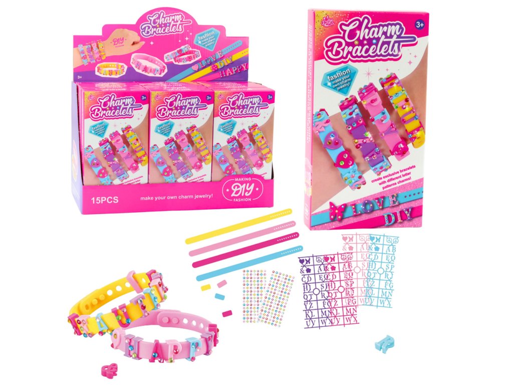 BRANKETY DIY SE ZÁVĚSY PÍSMENA Naše DIY náramky se závěsy jsou jedinečná kreativní sada, která umožňuje dětem vytvářet svou vlastní originální bižuterii.