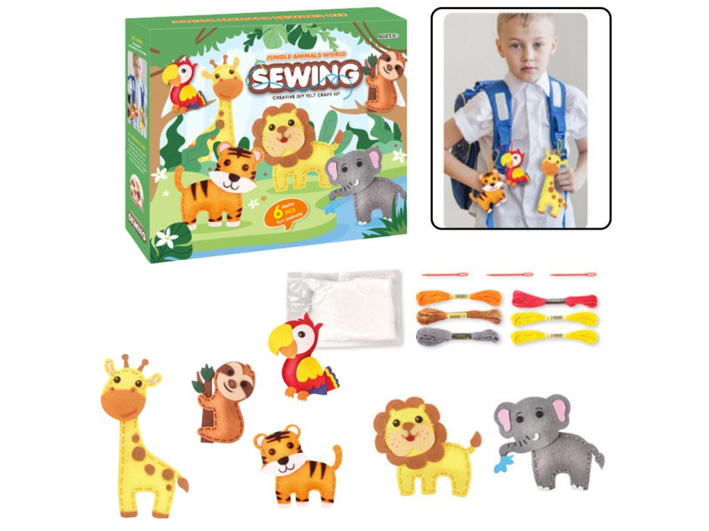 Kreativní Sada Šití Džungle: 6 Filcových Zvířátek pro Děti Od 6 Let
