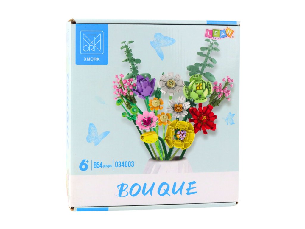 Sada obsahuje 854 prvků, ze kterých lze poskládat 12 různorodých květin a vytvořit tak působivou a vícebarevnou kompozici Tento buket může sloužit jako dekorace interiéru nebo jako originální dárek pro blízkou osobu