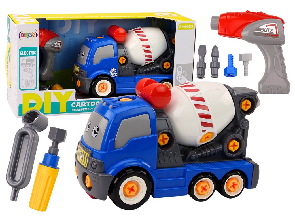 Kreslená Betonmíchací Nákladní Auto Pro Rozebírání DIY Modrá