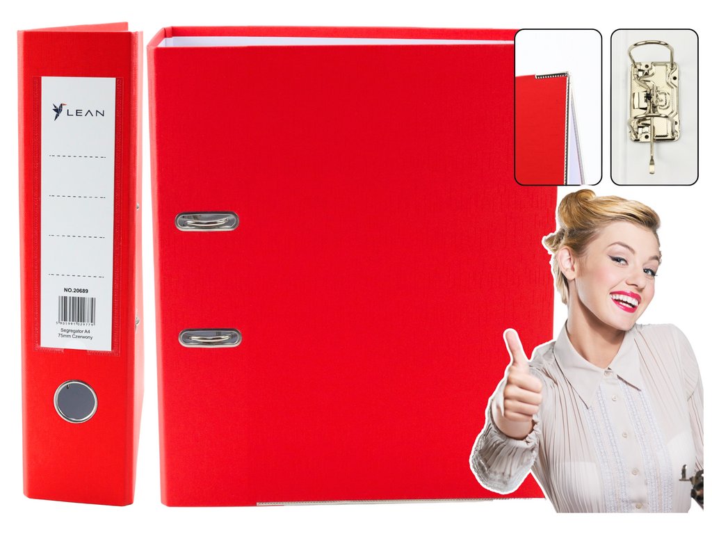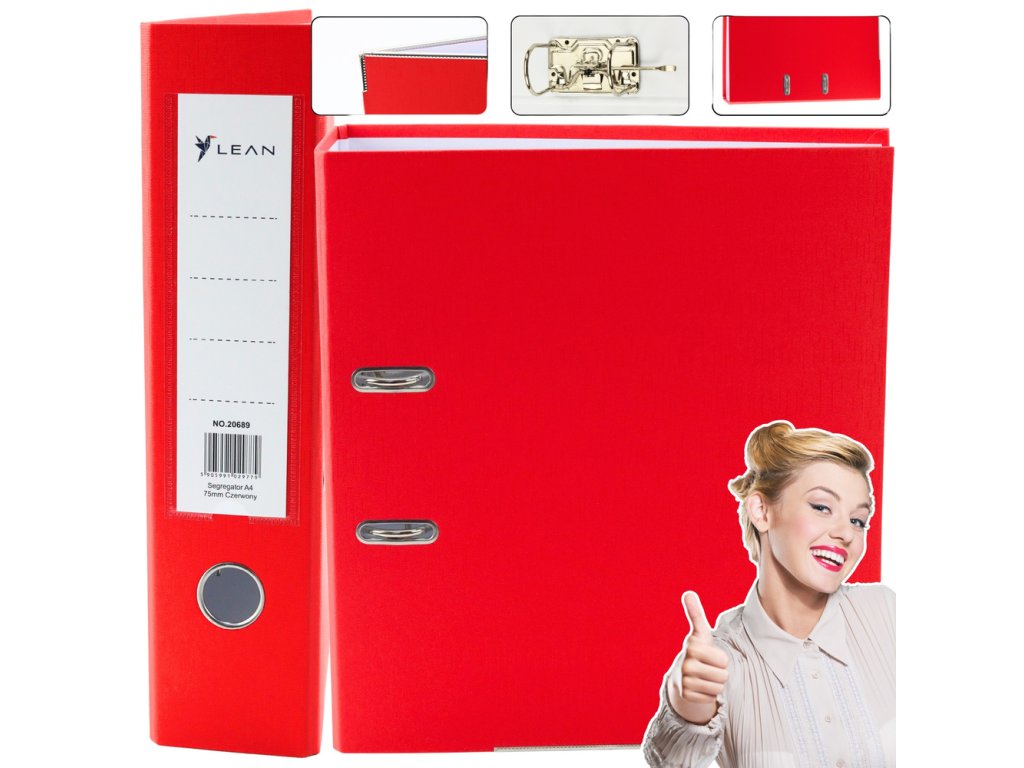 - Tento pořadač A4 s širokým hřbetem 75 mm v intenzivní červené barvě je ideální pro kanceláře, domácnosti a školní potřeby