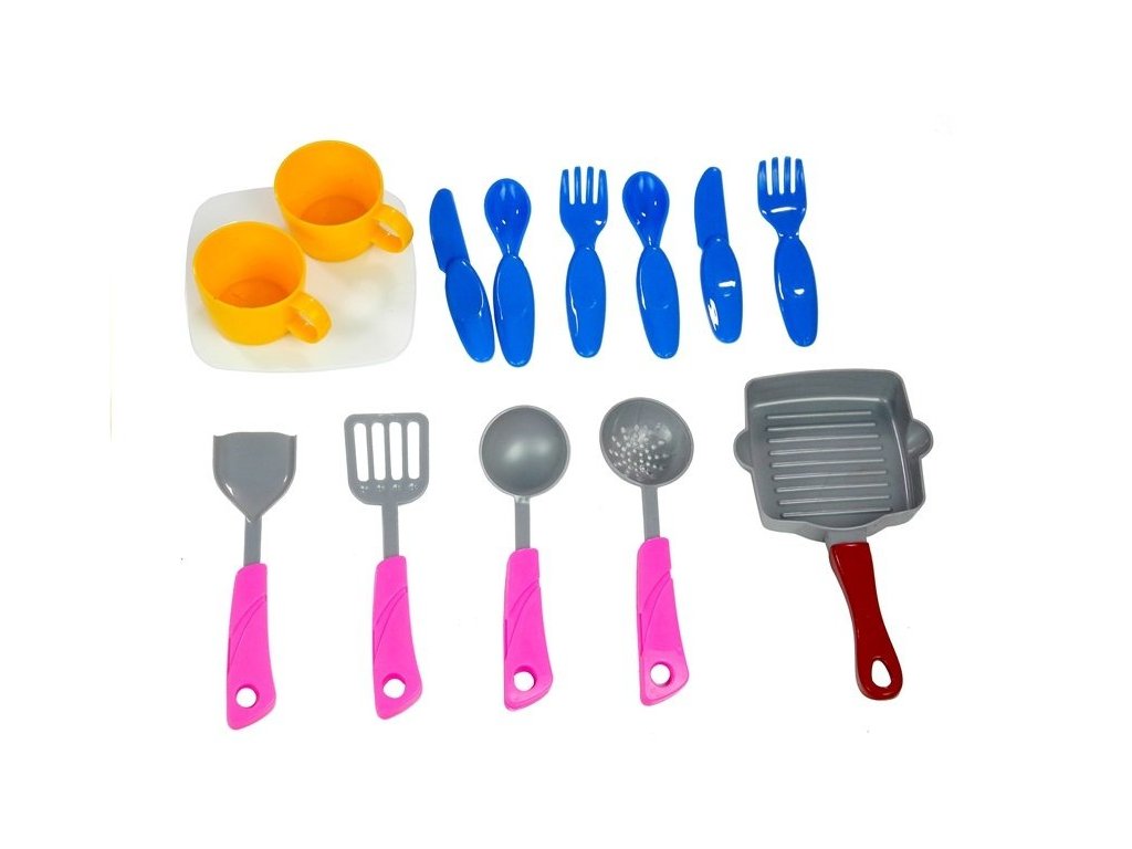 - kuchyňka obsahuje sporák s dřezem, pánve, talíře, hrníčky a sadou příborů, které napodobují reálné kuchyňské náčiní