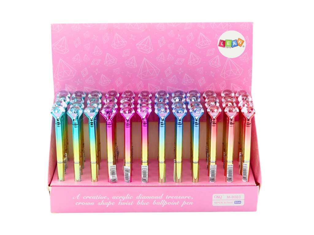 Kuličkové pero s diamantem, zlatý lesk mix barev, modrá náplň 0,7 mm