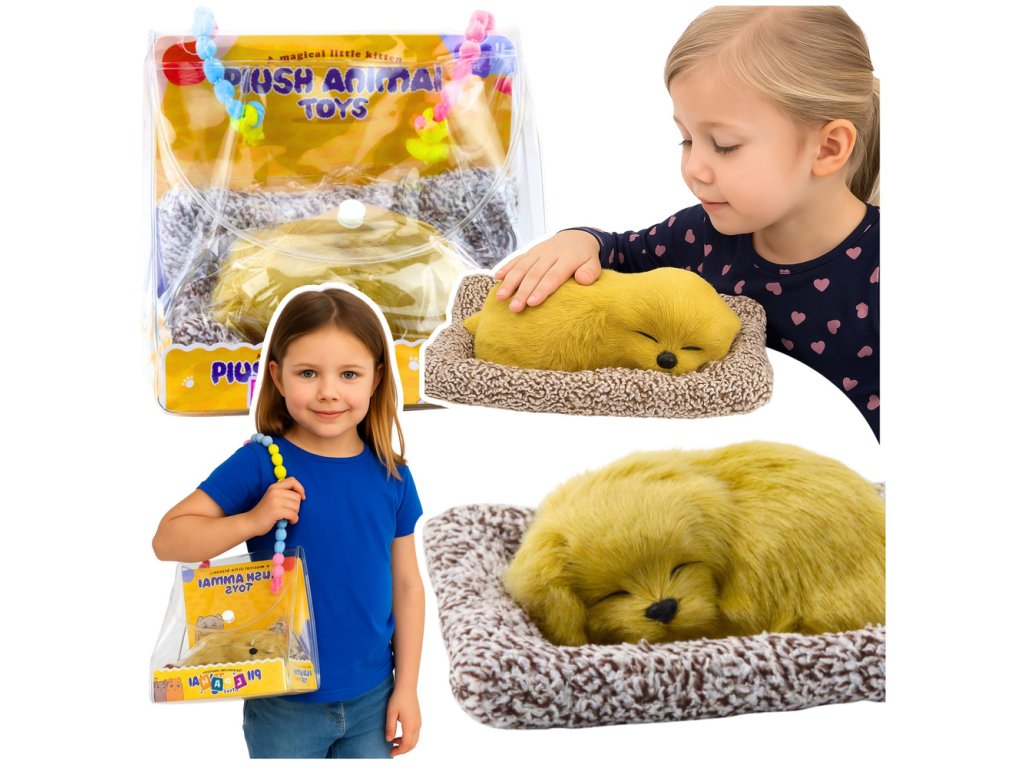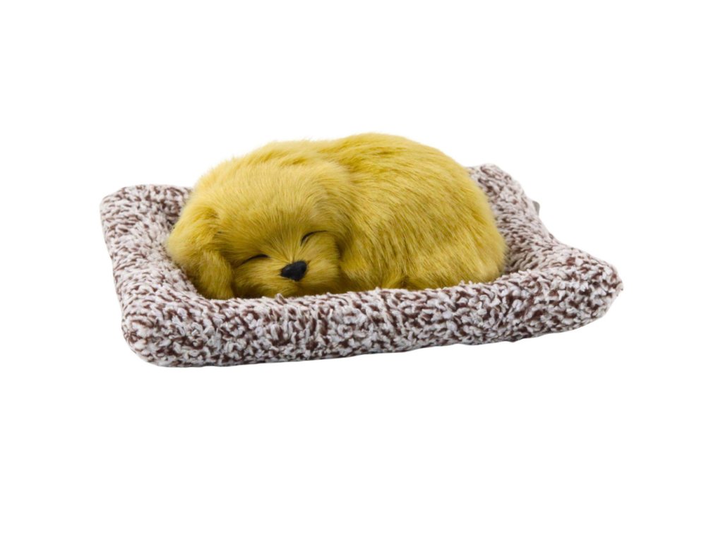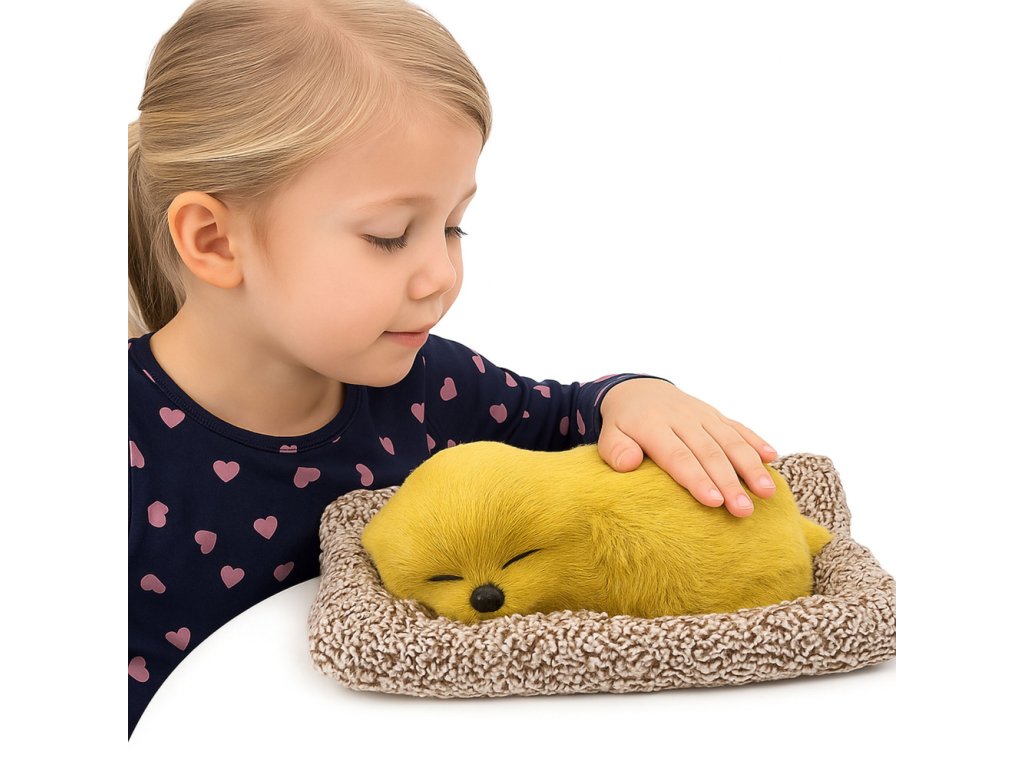 - Vzhled: Realistický spící pejsek