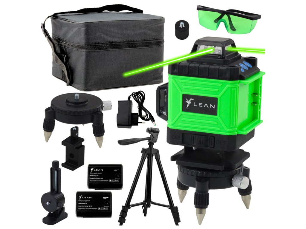 Laserová Vodováha Plošná 4D 16 Linií Taška 2 Akumulátory Zelená