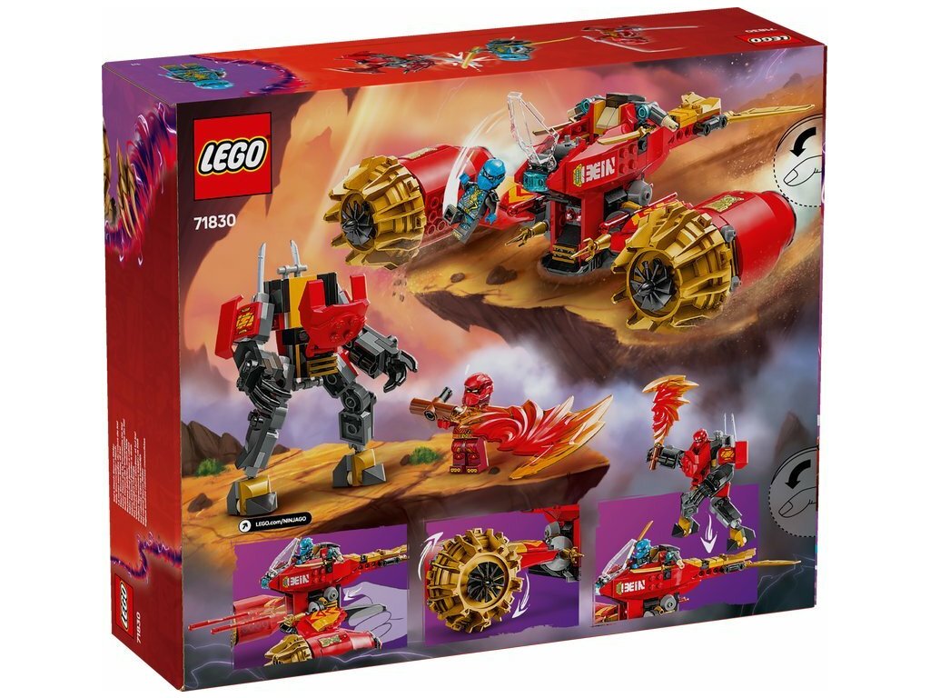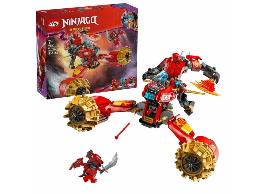 - LEGO 71830 NINJAGO Bouřlivý jezdec-mech Kaie je sada, která umožňuje sedmiletým a starším dětem přehrávat vzrušující scény z třetí sezóny televizního seriálu NINJAGO® Vzestup draků