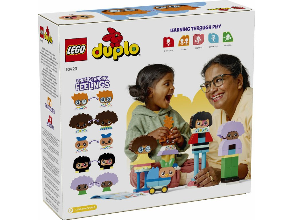 Sada LEGO® DUPLO® TOWN Figurky s Emoce (10423) poskytuje dětem od tří let velkou dávku radostné kreativity Zvídavé děti poznávají, že lidé jsou různí, a tento set jim pomáhá pochopit, že i když každý vypadáme jinak, všichni můžeme být přáteli