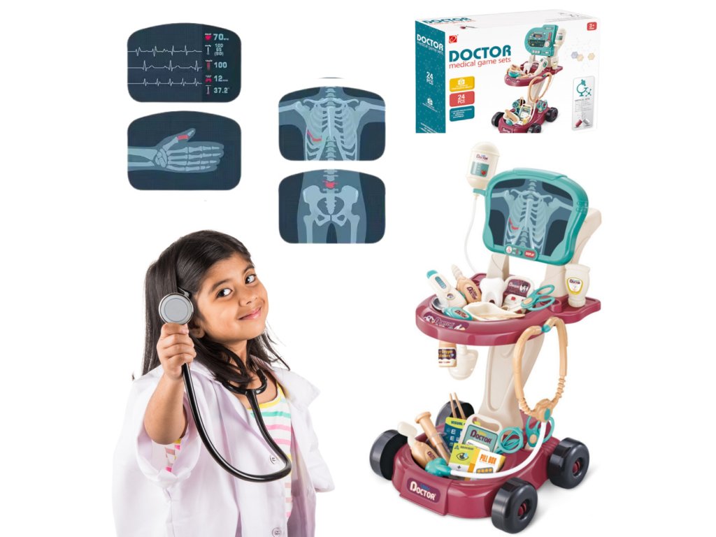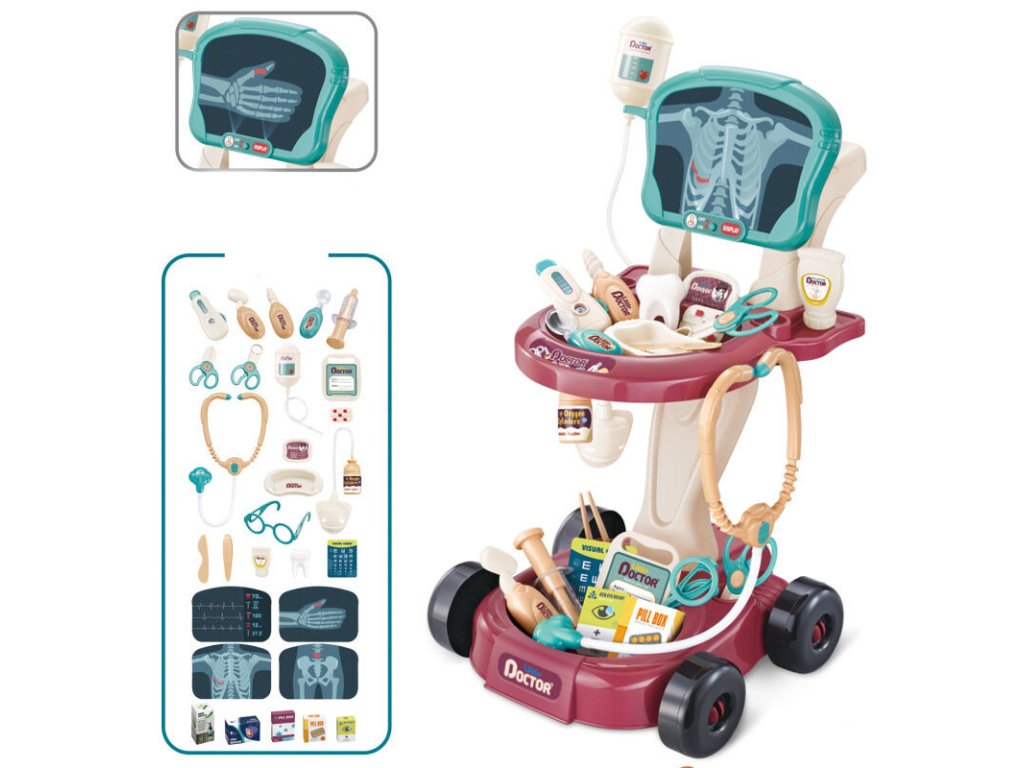 - Lékařský stolek na vozíku Doktorská sada EKG je bohatě vybavený a ideální pro malé nadšence hry na lékaře