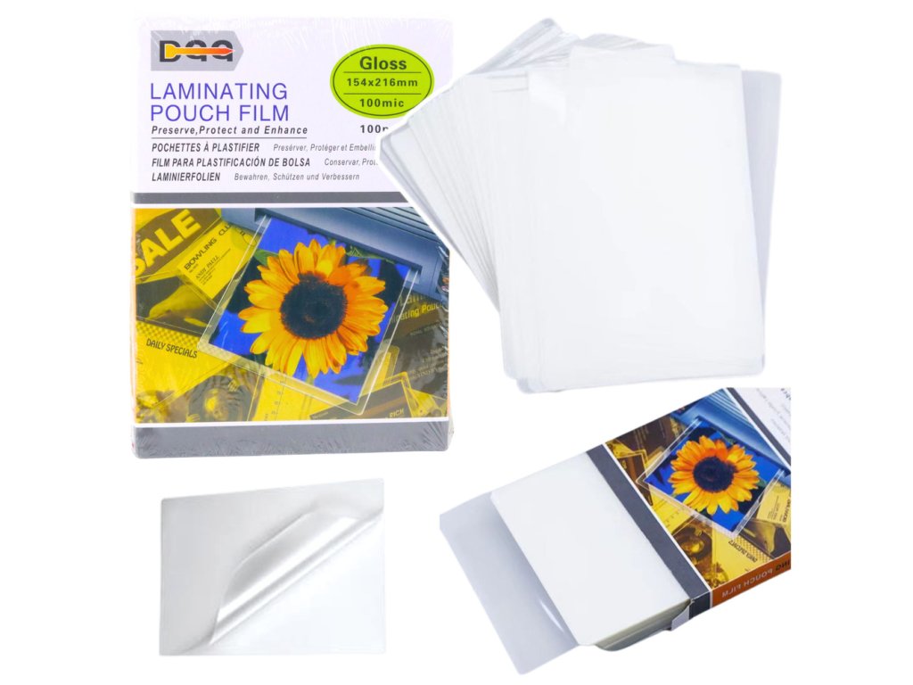 Lesklá Laminovací Fólie 154×216 MM 100 MIC 100 KS je spolehlivý způsob, jak zabezpečit a zpevnit dokumenty, fotografie, certifikáty a vzdělávací materiály