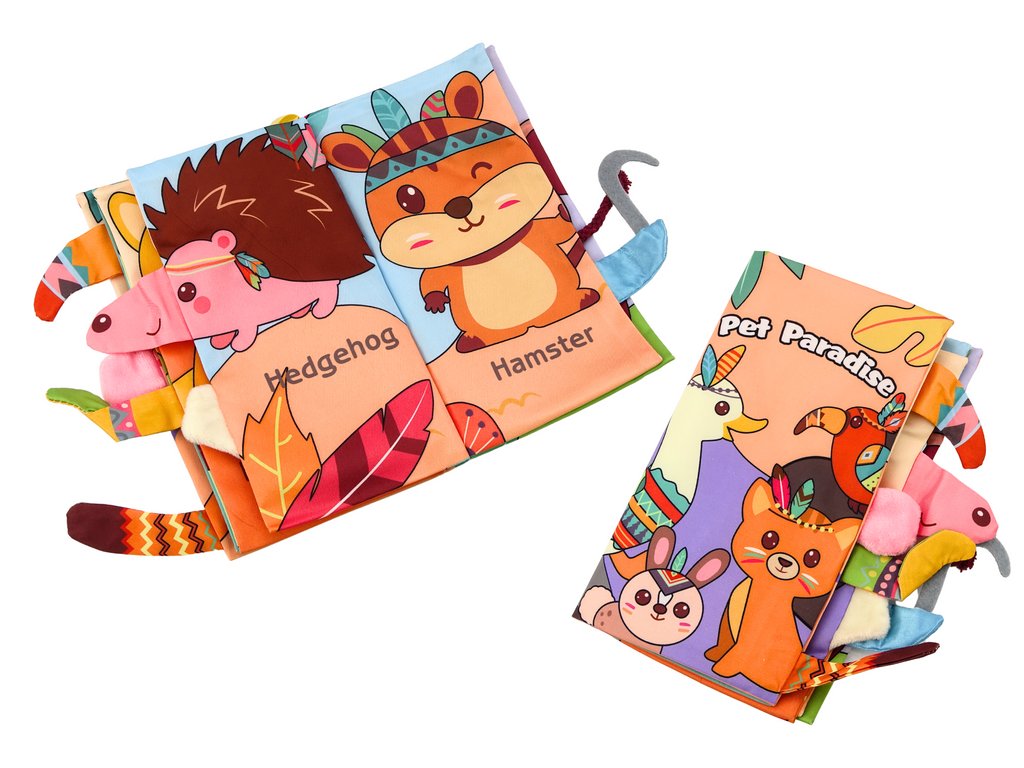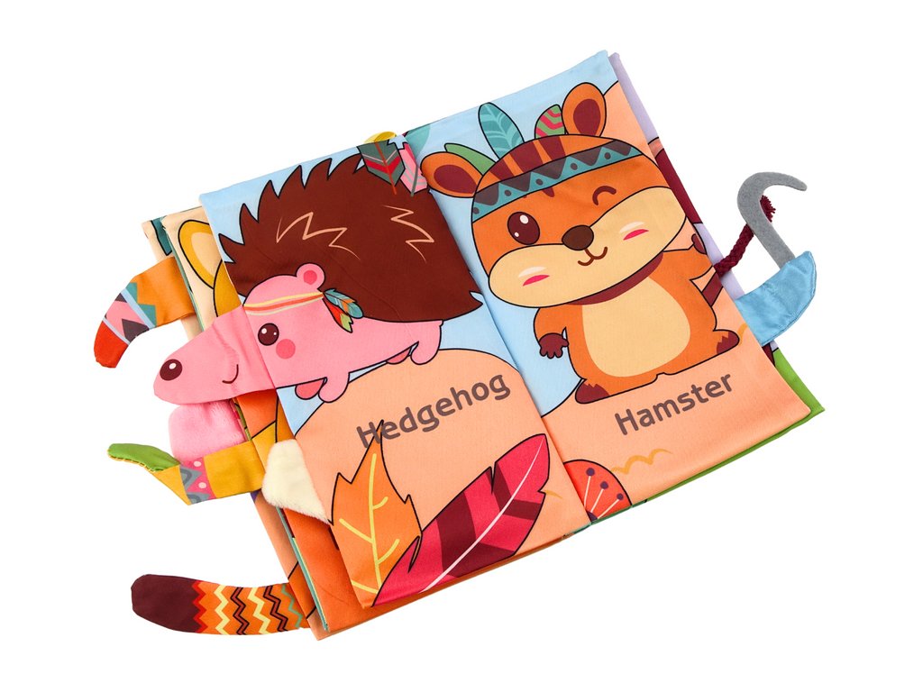 Sotočená z barevného a příjemného materiálu na dotek, tato knížka je nejen vizuálně atraktivní, ale také povzbuduje ke častému prohlížení a objevování. Každé zvířátko je opatřeno popiskem v anglickém jazyce, což dítě nejen uvádí do světa slov, ale také rozvíjí jeho slovní zásobu a jazykové schopnosti od nejranějšího věku.