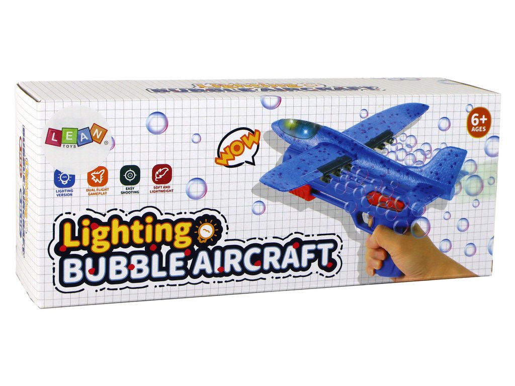 - Letadlo na mýdlové bubliny s pistolí, modré Letadlo s foukačkou na mýdlové bubliny není jen obyčejné letadlo