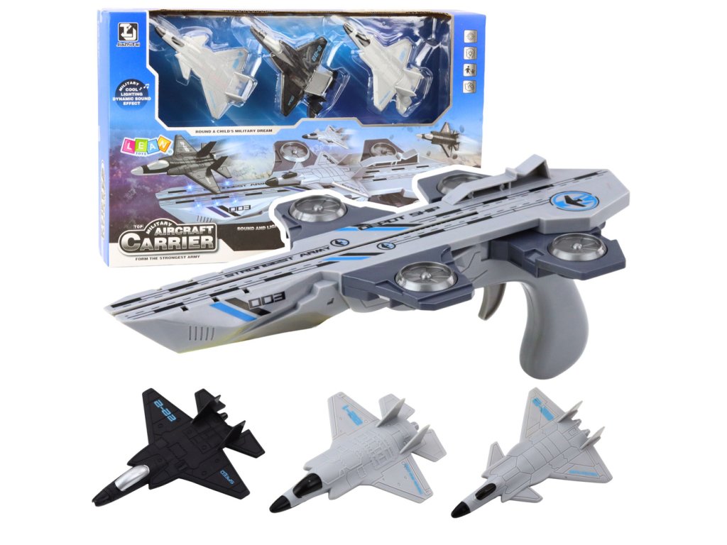 Pistole s unikátním designem inspirovaným futuristickým letadlovým nosičem umožňuje samostatné vystřelování lehkých stíhaček pomocí jednoduchého pružinového mechanismu Díky pevnému uchopení a ergonomickému tvaru dítě snadno udrží vystřelovačku v ruce, a stiskem spouště se nejen učiní let letadla, ale také zapnou světelné a zvukové efekty, které výrazně zvyšují realismus hry