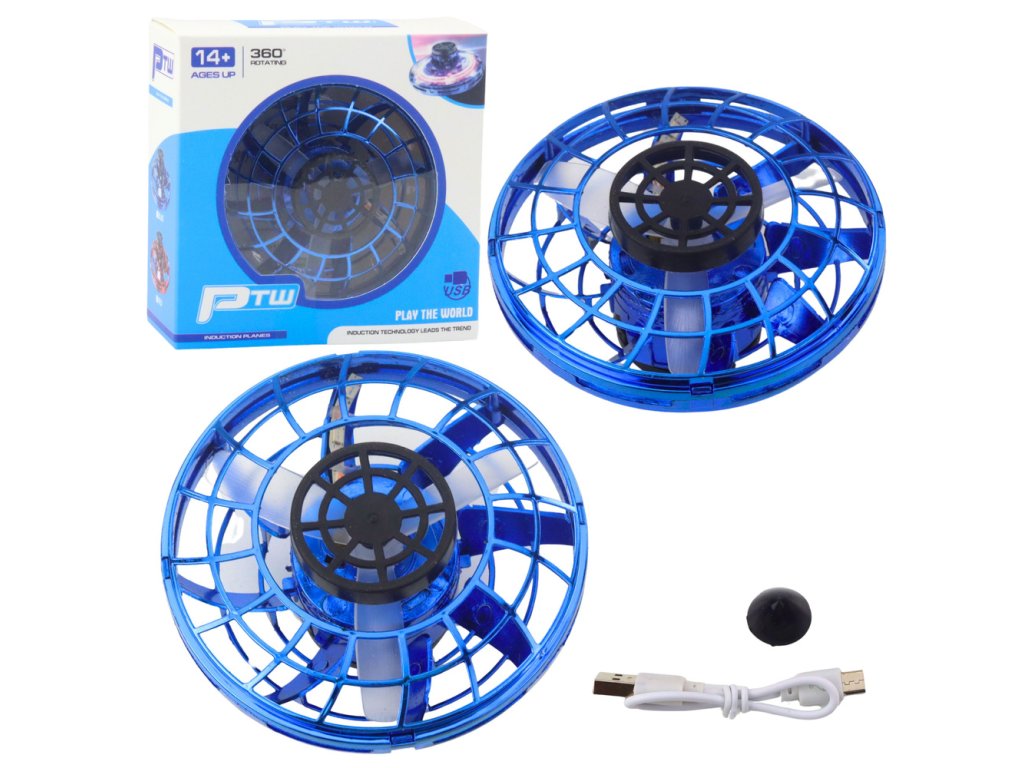 Létající Disk UFO pro Házení s LED Světlem Gyroskop Modrý