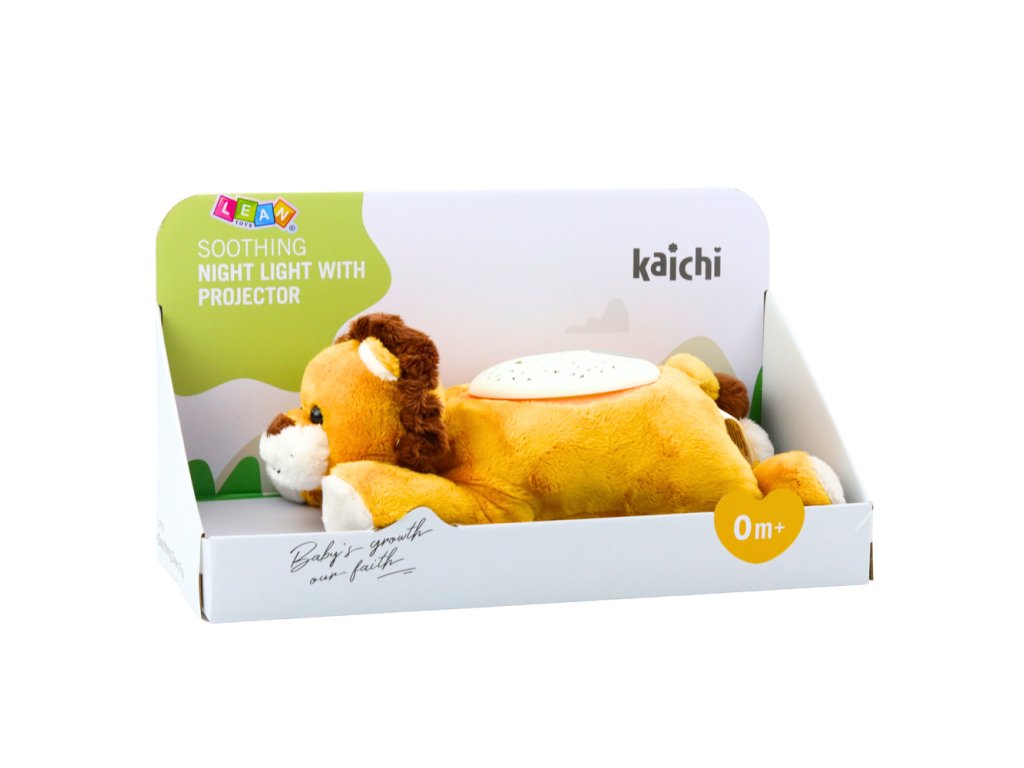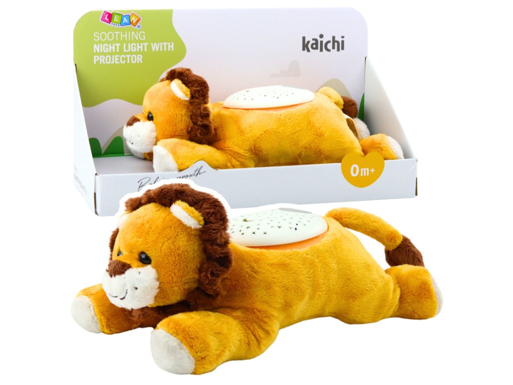 Použití měkkého, příjemného materiálu a pečlivě zvolených světelných a zvukových funkcí zajišťuje dítěti pocit bezpečí, komfortu a uklidnění během večerního odpočinku Integrovaný projektor umístěný na zádech lva vytváří relaxační projekci hvězd a jemného, barevného světla, které jemně osvětlují pokoj a zaujmou dětský zrak