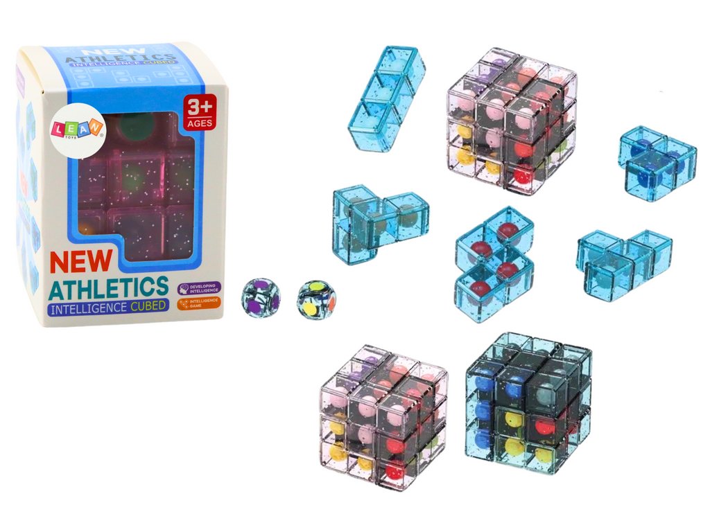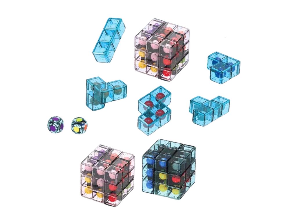 Logická stavebnice puzzle skládáčka kostka hra růžová je pokročilá skládačka, která nejen rozvíjí manuální dovednosti, ale také výborně tvaruje prostorovou představivost Skládá se z různorodých kostiček, které uvnitř ukrývají barevné kuličky