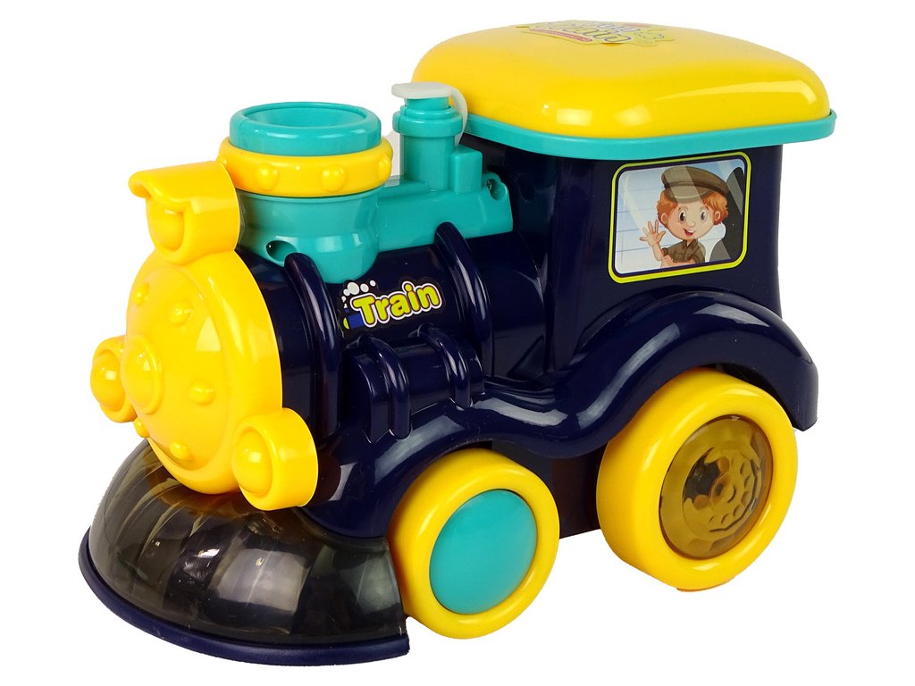 - Lokomotiva na mýdlové bubliny jezdí světlem a zvuky, modrá Lokomotiva na mýdlové bubliny je hračka, která potěší každé dítě