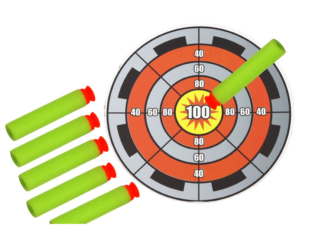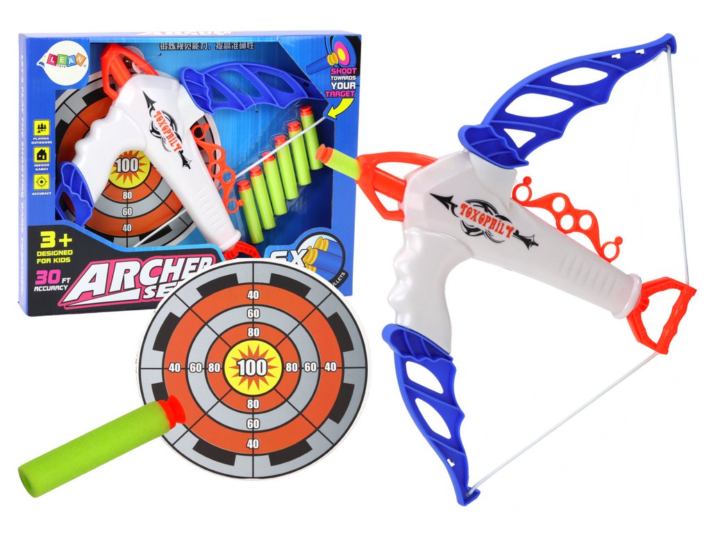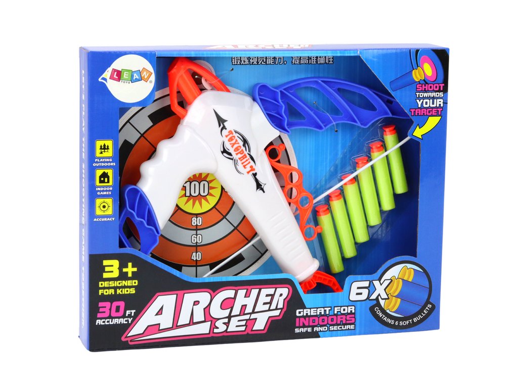 - Sada se skládá z luku a šesti pěnových šípů s přísavkou, které lze bezpečně vystřelit na přiložený terč