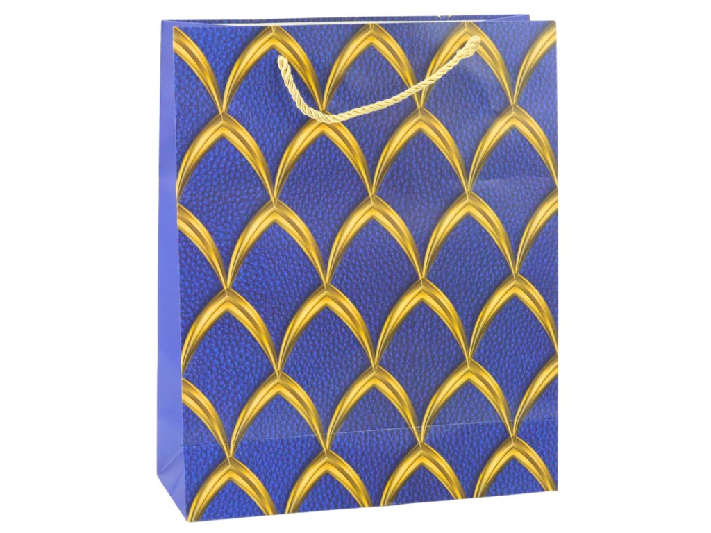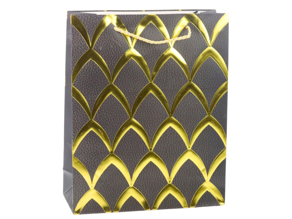 TORBA DÁRKOVÁ ZLATÉ ZDOBENÍ ELEGANTNÍ Elegantní dárková taška s mimořádně efektním designem, která se vyznačuje lesklým motivem ve zlatém barevném provedení Vzor inspirovaný luxusními zdobením dodává tašce jedinečný charakter, její originální vzhled přitahuje pozornost a přidává prestiž každému daru