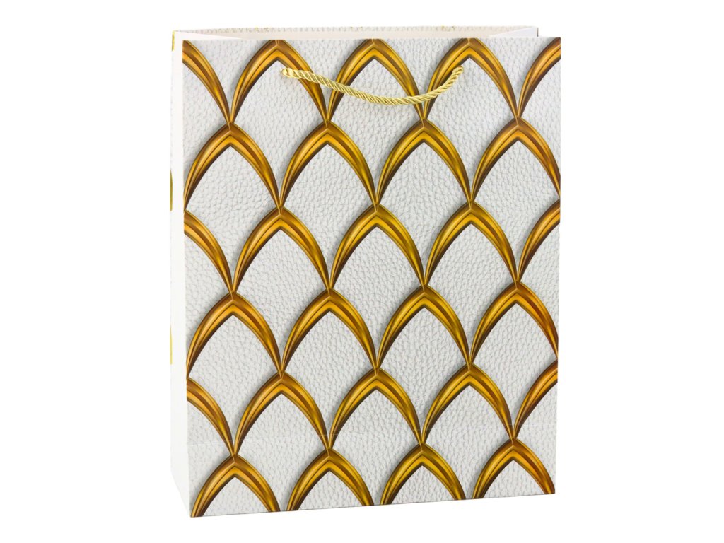 - Vzor inspirovaný luxusními zdobením dodává tašce jedinečný charakter, její originální vzhled přitahuje pozornost a přidává prestiž každému daru