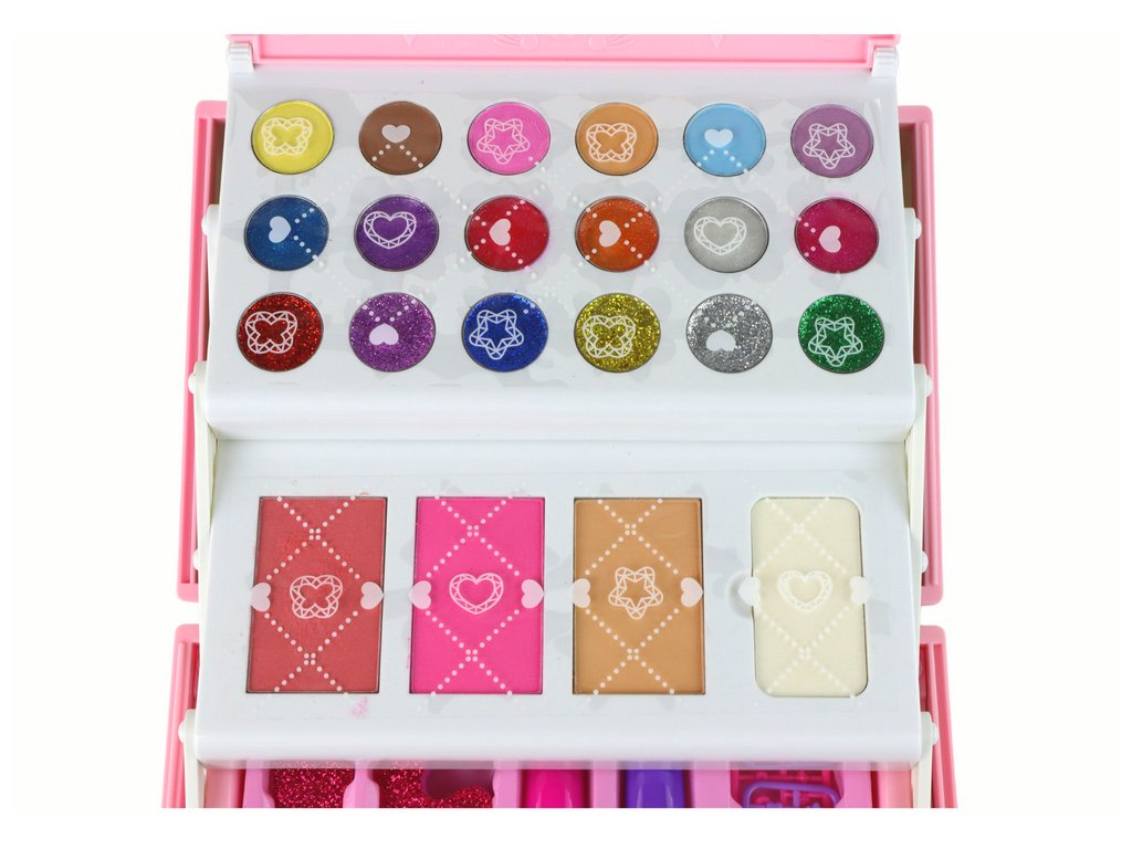Zamilujte se do našeho růžového kosmetického kufříku, který přináší radost z líčení. Skvěle vybavený balíček obsahuje různé odstíny očních stínů, lesky na rty a třpytky pro jedinečný look. Praktické nástroje a 3D nehtové nálepky umožňují tvořit vždy nový styl. Perfektní dárek pro každou malou parádnici.